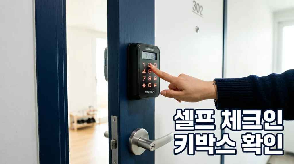 📌 확인 포인트: “셀프 체크인인가요, 직접 만나서 열쇠를 받나요? 키박스라면 번호를 미리 알 수 있을까요?”